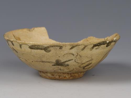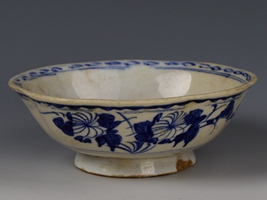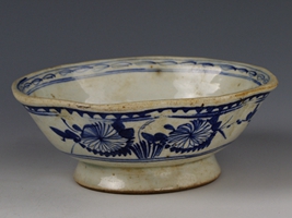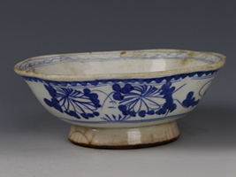 中华民国青花花草纹花口瓷碗