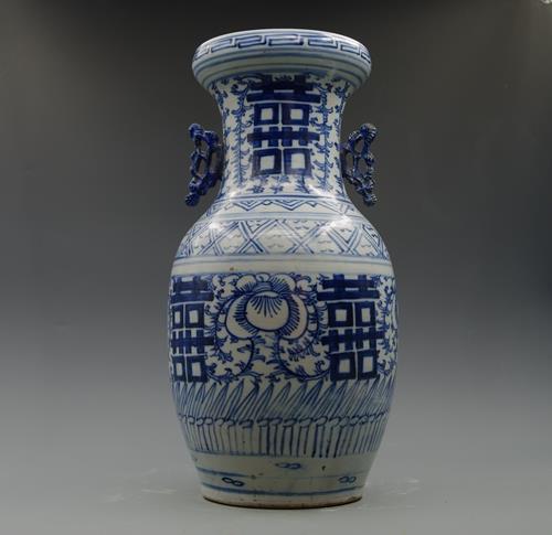 中华民国喜字纹青花缠枝双耳瓷瓶