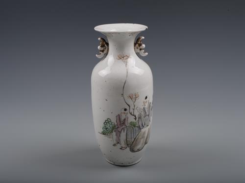 清粉彩童子读书双耳瓶