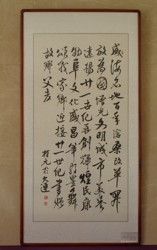 1999年于植元行书《迎接廿十一世纪书赠故乡父老》(资料)