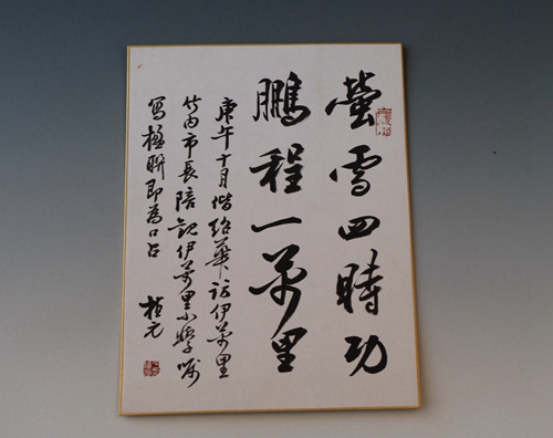 1990年于植元行书《座日本伊万里小学嘱写楹联口占》(资料)