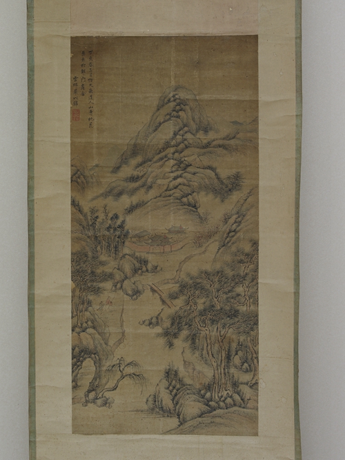 清丁亥春三月毕以锦仿大痴道人山寺桃花图轴