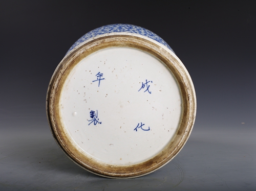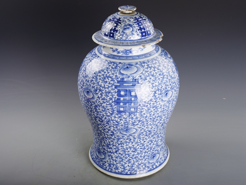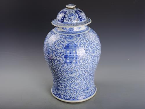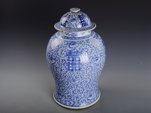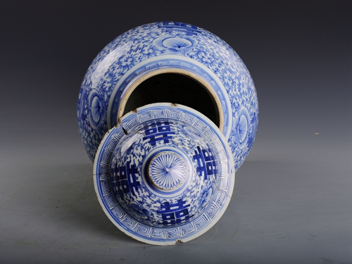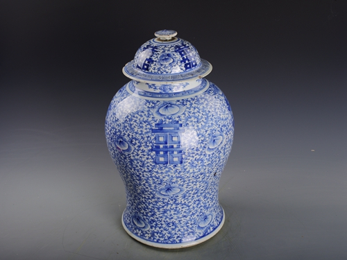 清仿成化青花缠枝喜字纹瓷盖罐