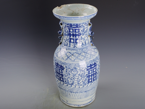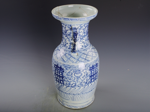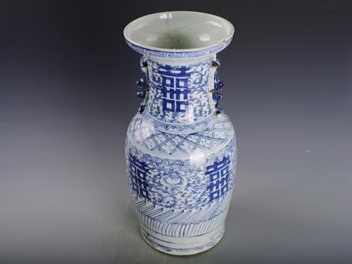 清青花喜字纹双耳瓶