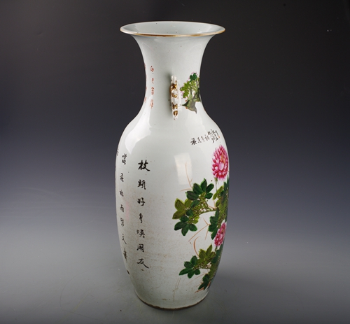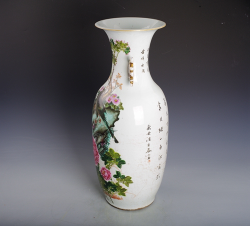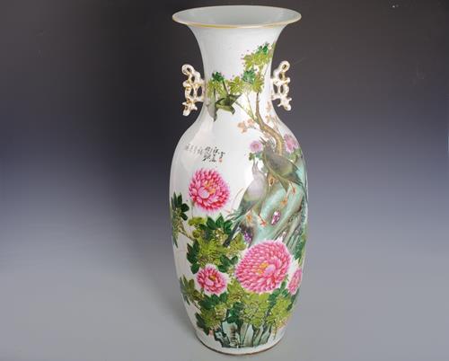 中华民国彩花鸟纹双耳瓶
