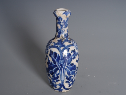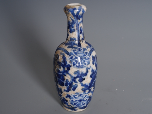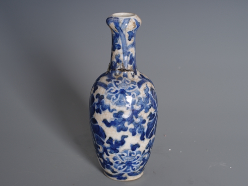 清青花莲花纹开片棒槌瓶