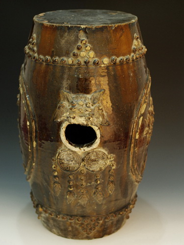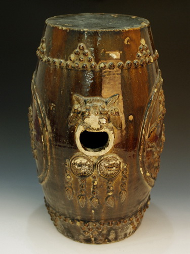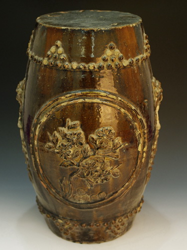 中华民国酱釉花草兽纹圆瓷墩