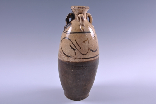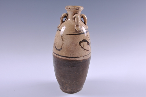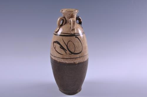 宋磁州窑白釉黑彩四系瓶