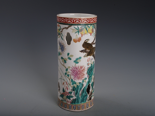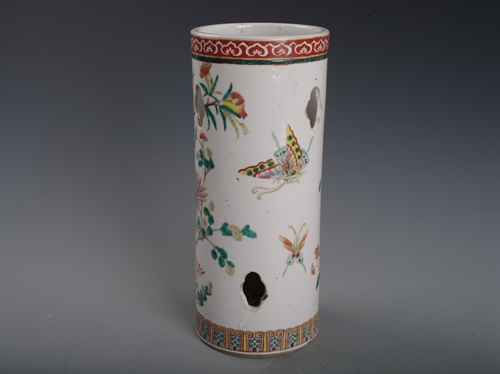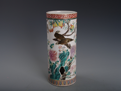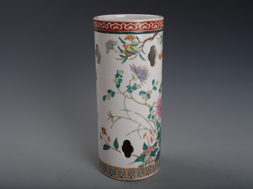 清同治粉彩花鸟镂空帽筒
