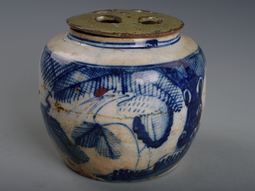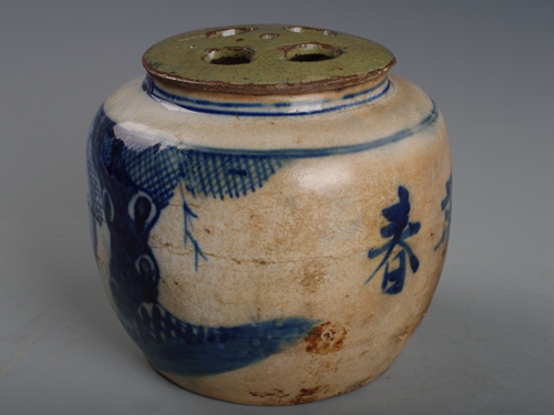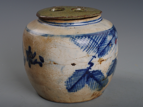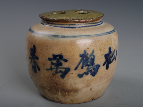 清青花松鹤万春盖罐