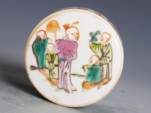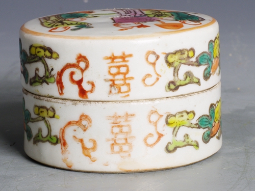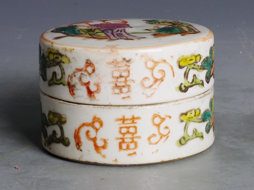 清末民国粉彩人物喜字纹梳妆盒