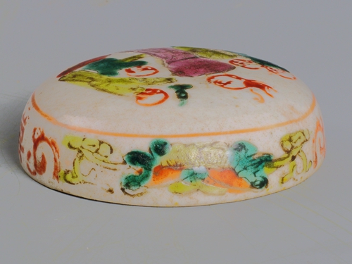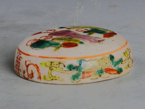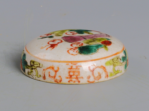 清粉彩人物囍字纹梳妆盒盖(残)