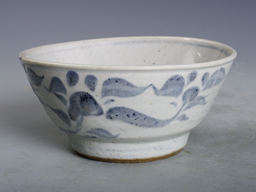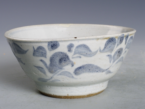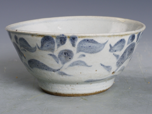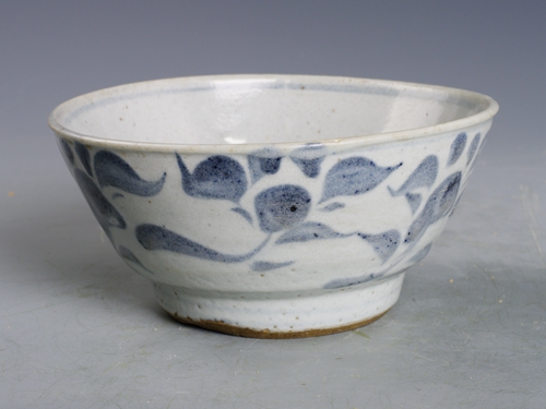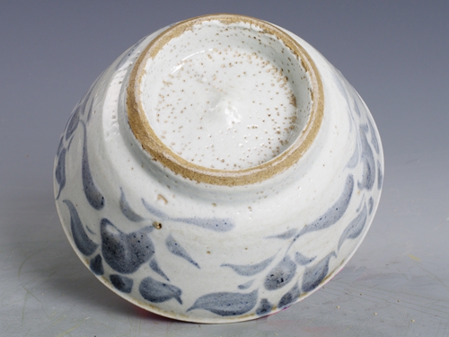明青花草花纹高足碗