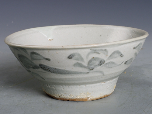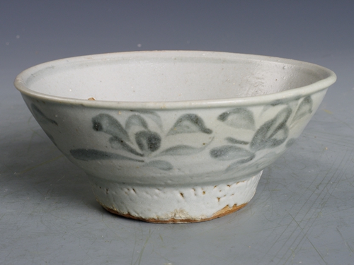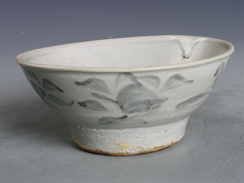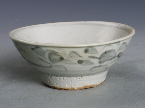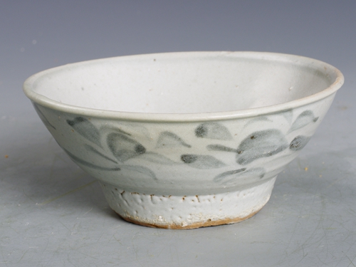 明青花草花纹高足碗
