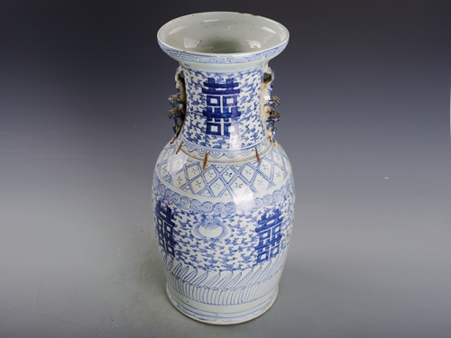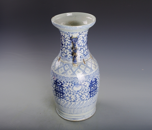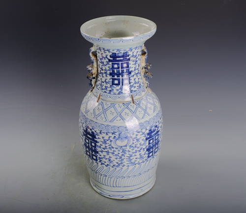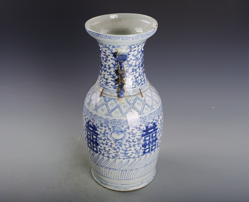 清青花喜字纹双耳瓶