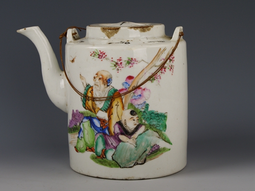 中华民国粉彩人物提梁瓷壶