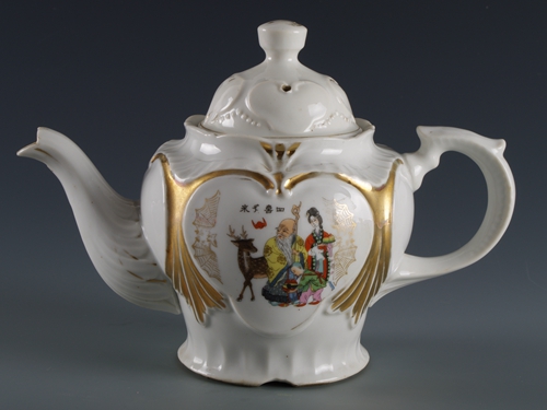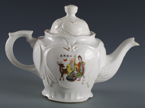 中华民国四喜齐来粉彩人物瓷壶