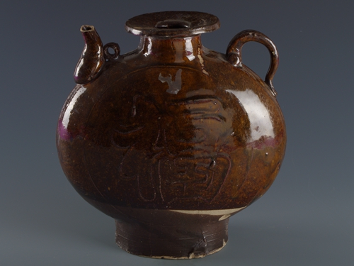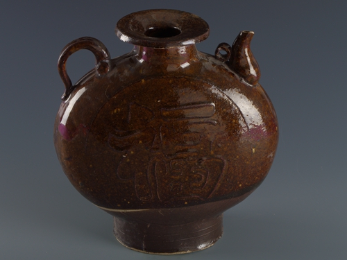 中华民国酱釉福字纹瓷扁壶