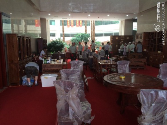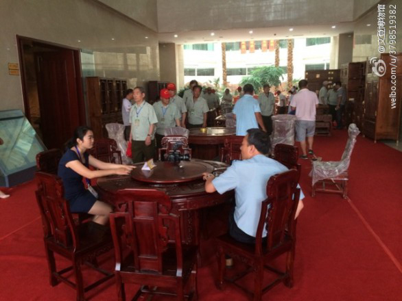 2014年7月1日,文登区博物馆红木家具艺术展火热进行中。