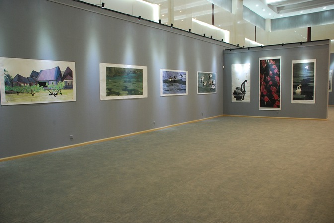 今日贾平西、陈茜个人画展在威海市文登区博物馆三楼临时展厅开展,共展出两位画家80余幅优秀作品。